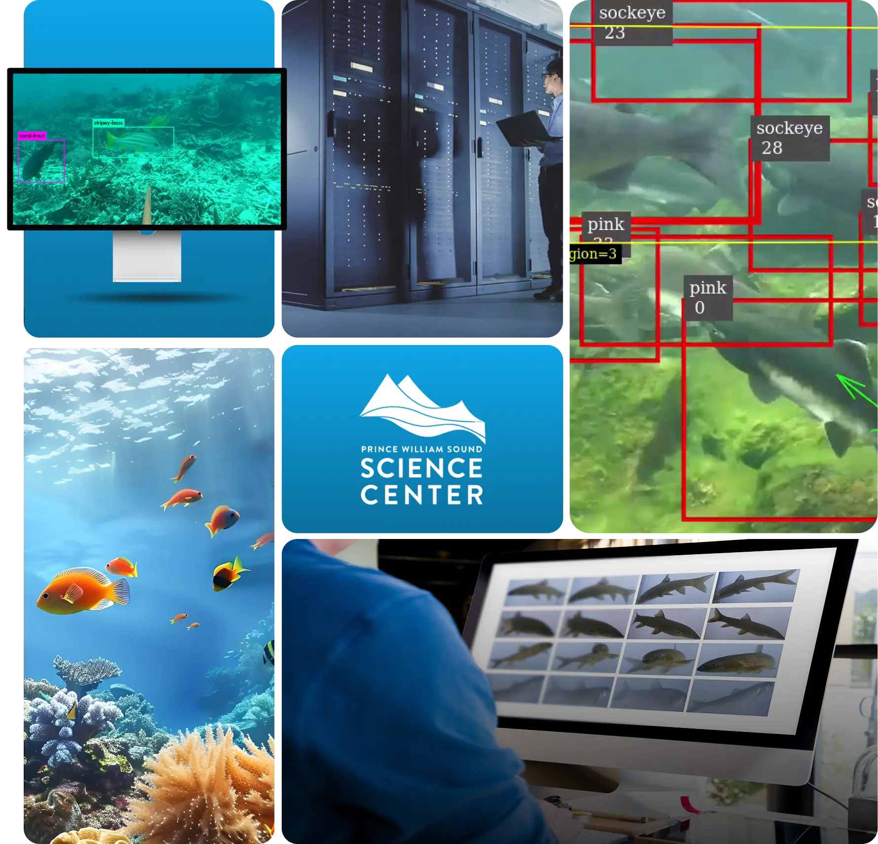 The Prince William Sound Science Center (PWSSC) is an AI-powered fish monitoring system that uses advanced computer vision to improve fish counting and species identification, aiding ecological and weather-related research.