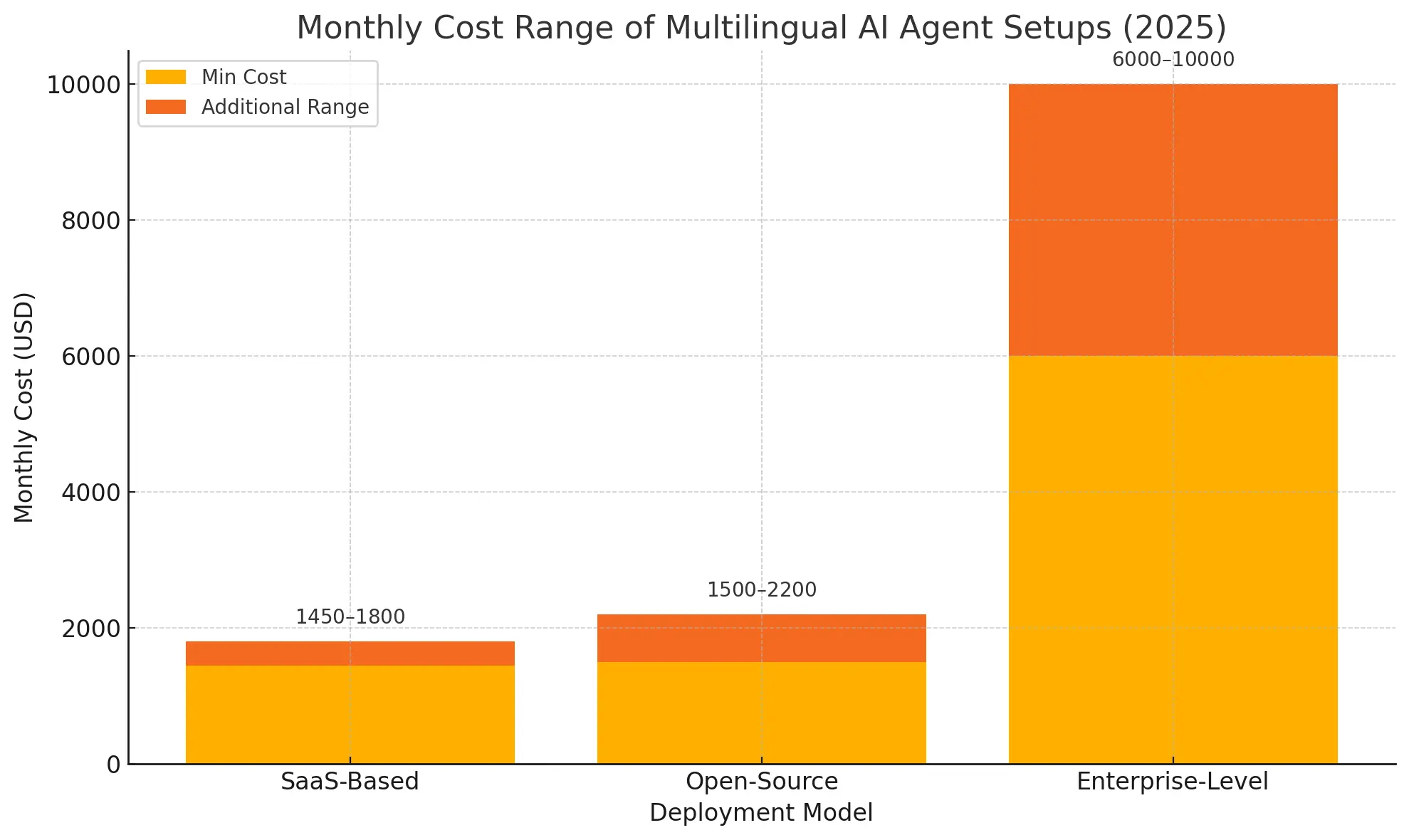 If you’re just getting started or testing the waters, a SaaS-based multilingual AI agent is the fastest and most affordable route. You can plug into tools like GPT-4o, use a basic translation API, and deploy a simple front-end widget, all for around $1,500 a month.Â